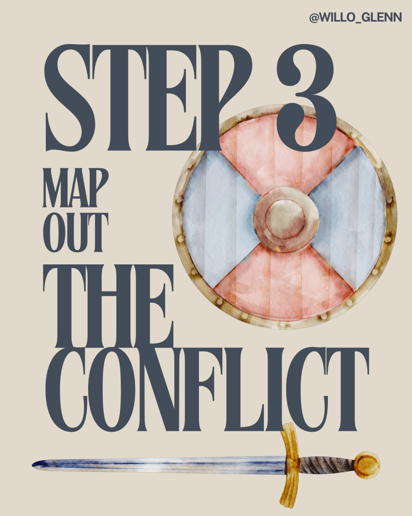 The next step in your outlining process should be mapping out the conflict. For each beat (see: the standard parts of a story), ask yourself the following questions and make note of the answers: